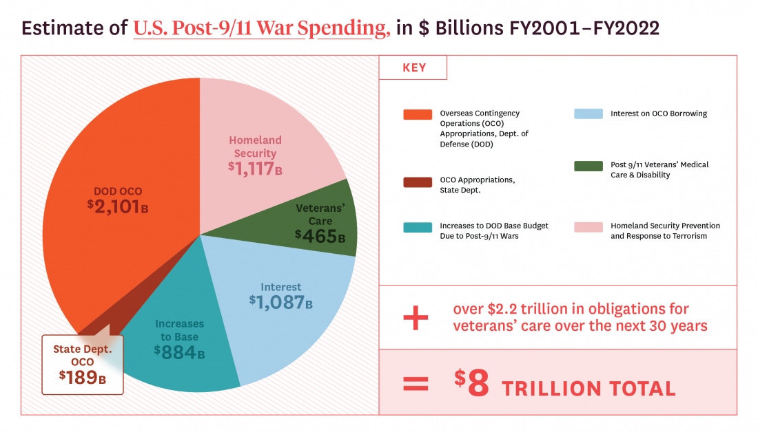 Below is a chart from The Costs of War Project at Brown University. They have a huge number of charts and info about many aspects of US wars since 9/11, such as the one below about the costs of these wars. Find the Costs of War Project here.